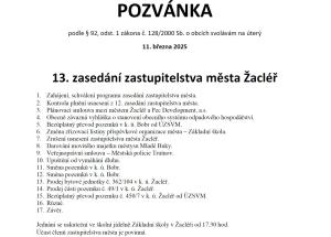 13. veřejné zasedání zastupitelstva města Žacléř se uskuteční 11. března od 17.30 hodin v jídelně základní školy.