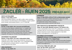 Partnerské město Lwówek Śląski pořádá v sobotu 28. září každoroční festival Dary lesa, který v bohatém programu zahrnuje i cyklojízdu okolím města. Akce je vhodná pro všechny věkové kategorie. Teplé jídlo pro každého v cíli. Doprava autobusem zdarma. Přihlášky: na email starosta@zacler.cz nebo formou SMS na číslo 724 790 372