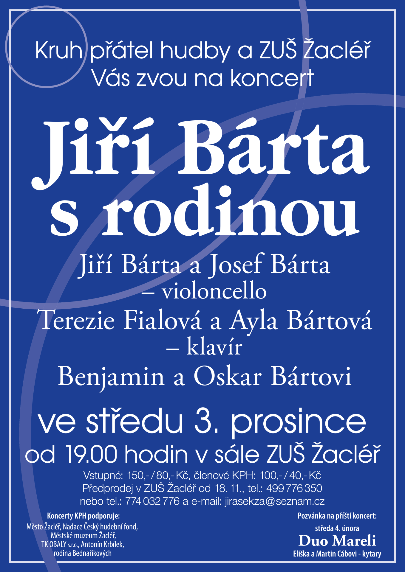 JIŘÍ BÁRTA S RODINOU - KONCERT VIOLONCELLO, KLAVÍR