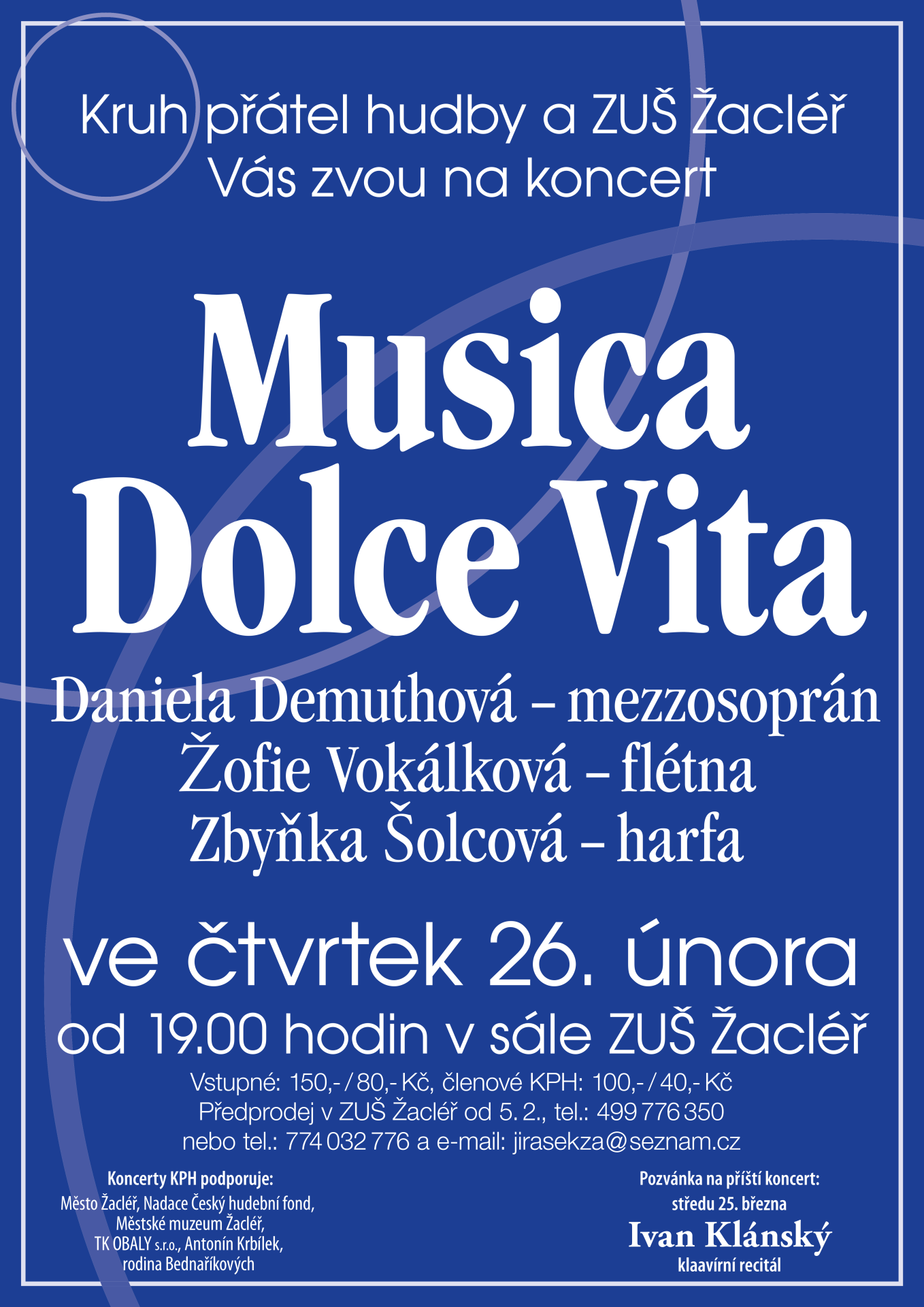Daniela Demuthová – mezzosoprán, Žofie Vokálková – flétna, Zbyňka Šolcová - harfa