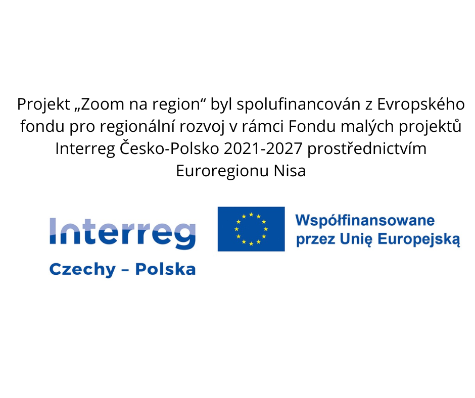 Projekt „Zoom na region“ byl spolufinancován z Evropského fondu pro regionální rozvoj v rámci Fondu malých projektů Interreg Česko-Polsko 2021-2027 prostřednictvím Euroregionu Nisa